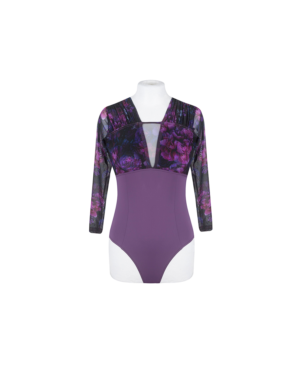 Long sleeved leotard with mesh overlay, available in two colourways. From the 'Velvet Rose collection'.